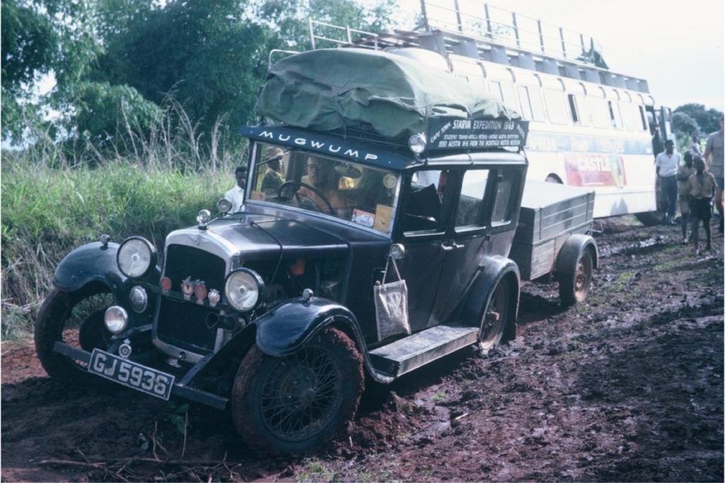 MUGWUMP is the name given to an Austin vintage car that travelled through Africa from Bristol in the U.K. to Cape Town in South Africa – and back again. This was quite a remarkable achievement for a vehicle that was already 33 years old at the time. The idea for the expeditions were conceived by four engineering students at the University of Bristol in 1963, and challenged the University of Cape Town engineering department to return the car back to Bristol.